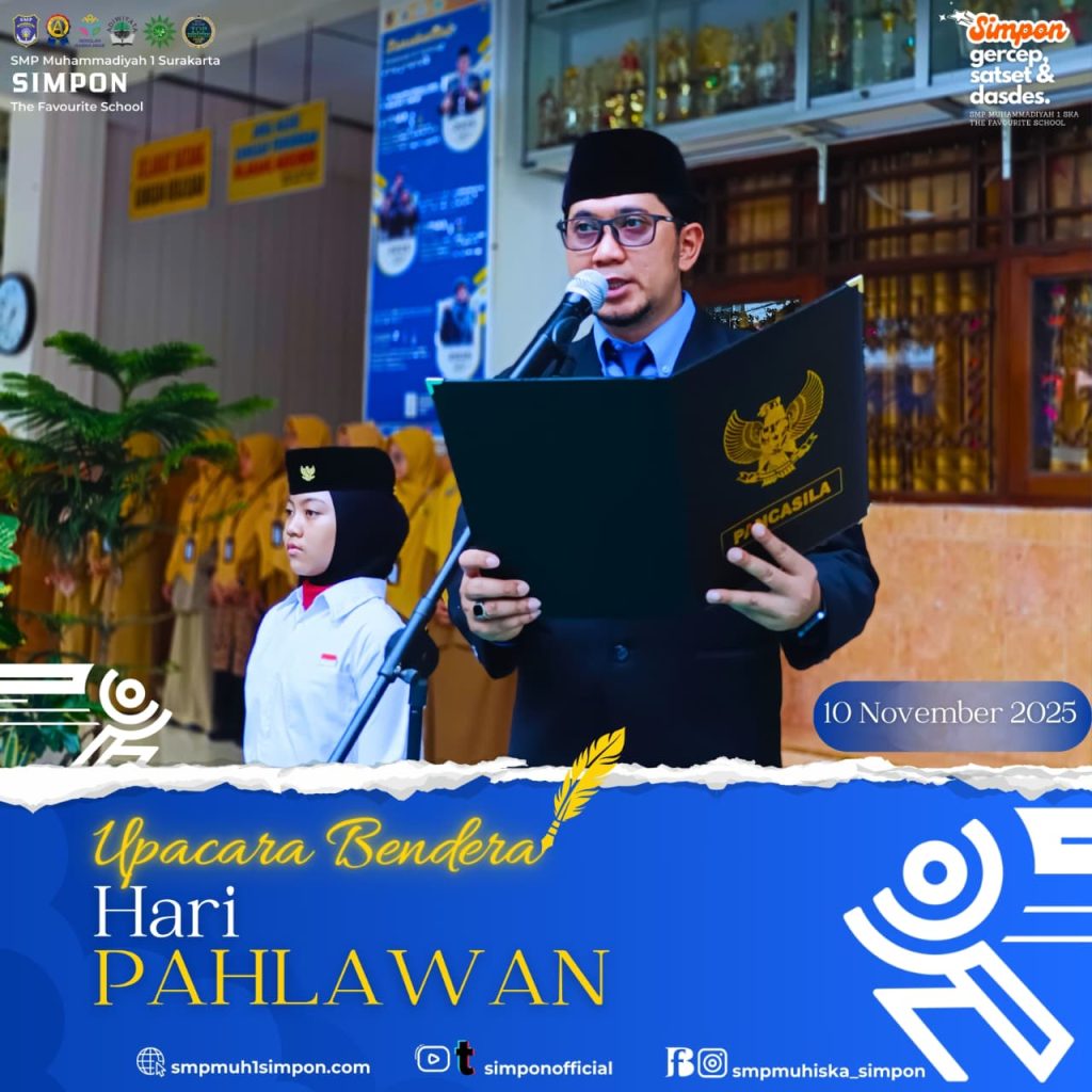 Upacara peringatan Hari Pahlawan tahun ini dipimpin langsung oleh beliau Kepala Sekolah SMP Muhammadiyah 1 Surakarta Dr.Rusmanto, S.PdI., Gr., M.PdI., selaku pembina upacara. dalam amanatnya beliau menyampaikan pentingnya meneladani perjuangan para pahlawan bangsa yang telah mengorbankan jiwa dan raga demi kemerdekaan Indonesia.