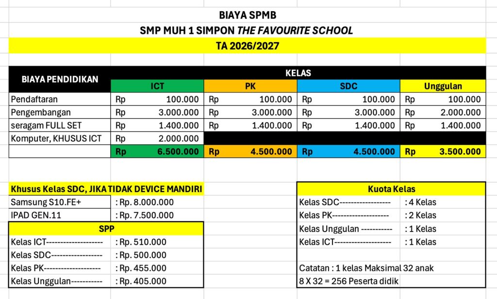 Info Pendataan Pendaftaran SPMB SMP Surakarta 2026/2027 di SMP Muhammadiyah 1 Simpon Surakarta The Favourite School